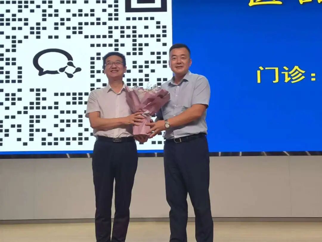 活动核心环节由漳州圆山医院院长李涛博士主讲健康讲座。他围绕“复杂脊柱与关节问题的成因与应对策略”“骨质疏松的早期筛查与科学防治”“常见老年退行性疾病的预防与管理”三大话题,结合专业知识与实用技巧展开解读,打破专业医疗知识与普通民众间的信息壁垒,引发观众共鸣。讲座尾声,君龙人寿漳州机构负责人吴烜先生向李涛院长献花致谢。