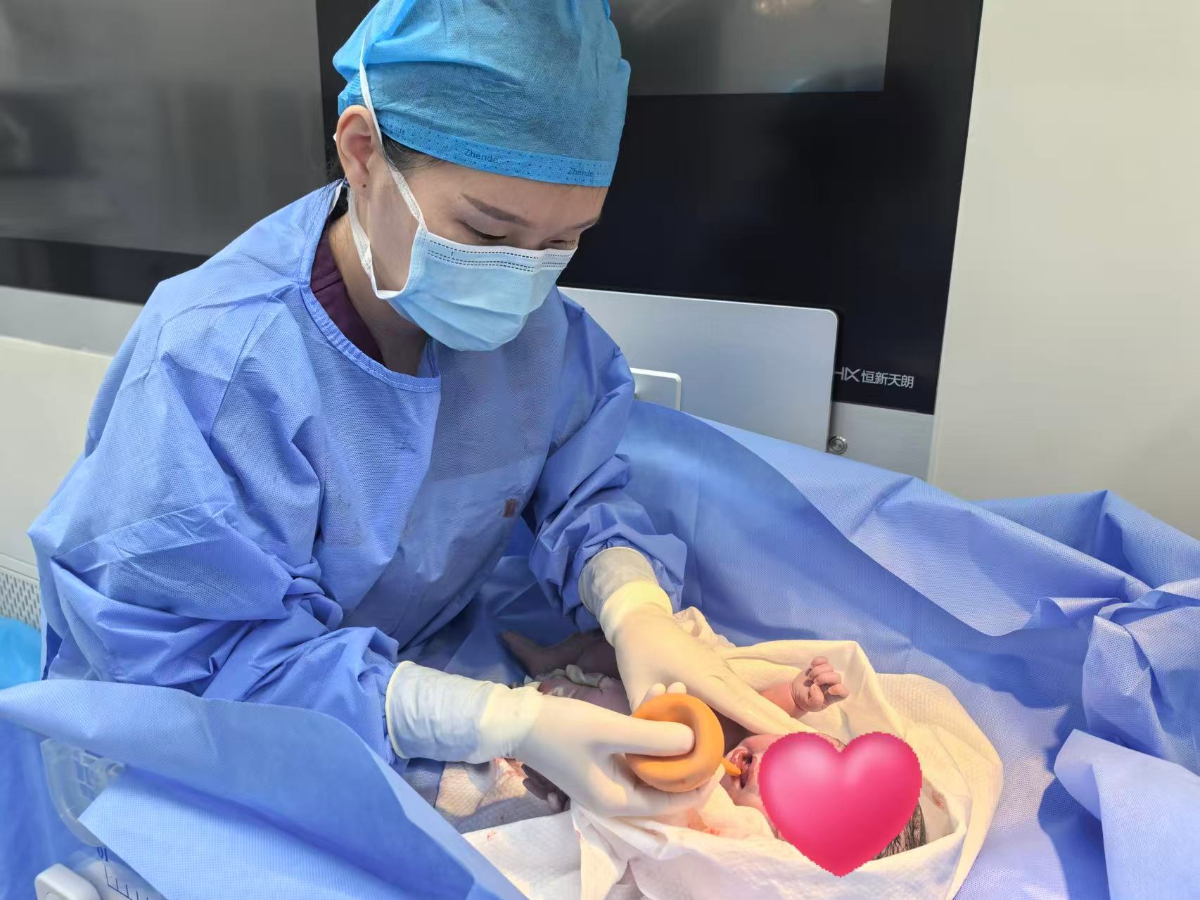 ▲助产士为宝宝清理口鼻分泌物