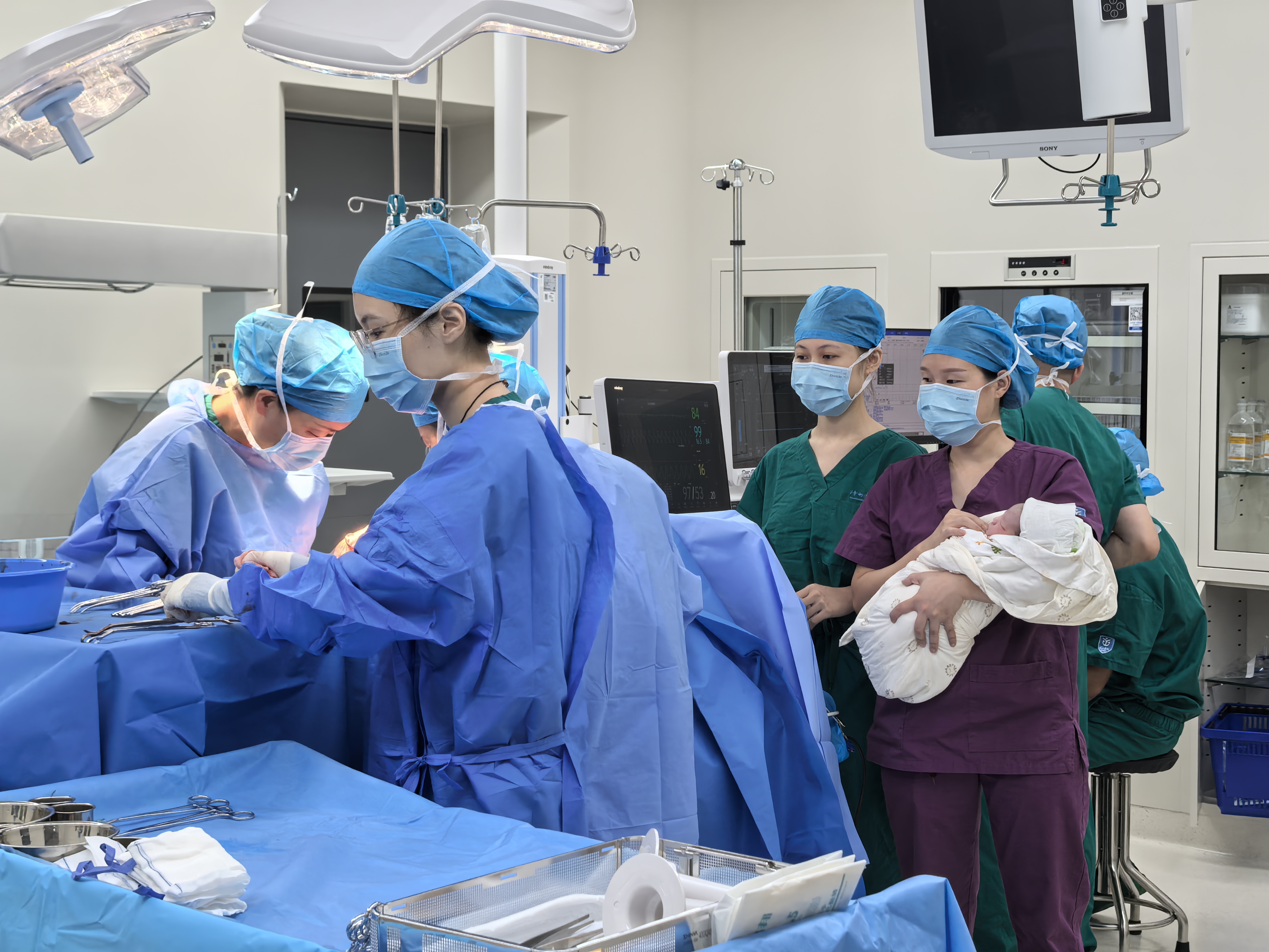 全方位安全保障:产房与新生儿科(NICU)相连;麻醉师24小时驻守产房,可及时全程分娩镇痛;由内科、外科、重症ICU、输血科等多学科专家组成急救团队,保障母胎突发紧急情况的安全。