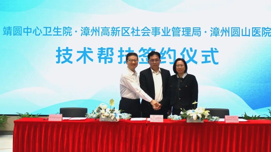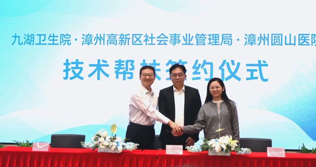 漳州高新区社会事业管理局卫健主任、九湖卫生院代表、颜厝卫生院代表、靖圆中心卫生院代表、圆山医院领导及临床骨干共同出席并见证本次签约仪式。